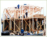 | 高野建築では、耐震性に強い2×6(ツーバイシックス)工法を採用しています。耐震性を強化するには、構造的な強度だけではなく、完全な防湿、防水施工が行なわれ、重量がバランスよく配分されていることが大切です。コンクリート住宅に比べ、軽量な構造であるため、更に大きな耐震性を発揮します。また、耐震構造には堅牢な基礎が欠かせません。高野建築では多雪地帯や重量住宅並の大型基礎を使用しています。 |