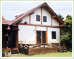 | 丸太材などの木材を組み重ねた壁を構造体とする住宅建築工法で、一般的に「ログハウス」と呼ばれます。丸太ではなく、丸い部分をカットした角材を使う場合もあります。東大寺正倉院の校倉造りにみられるように、日本でも古くから用いられてきた建築工法の一つです。 |
